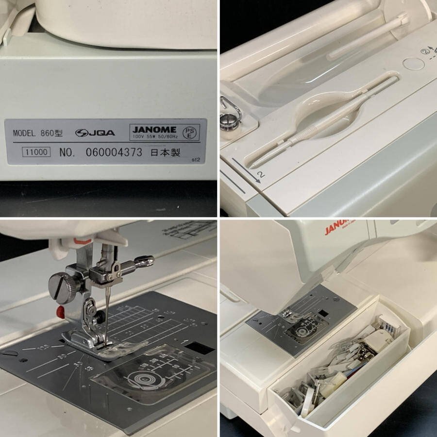 JANOME ジャノメ 860型 SECiO 11000 コンピューターミシン 押さえ上げレバー/刺しゅう枠x2式/テスト用不織布等/ケース付き*簡易検査品