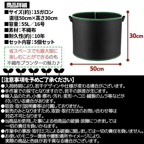 不織布プランター 不織布ポット 15ガロン 16号 5個 セット 不織布 プランター 植木鉢 大型 鉢 フェルトプランター 軽い