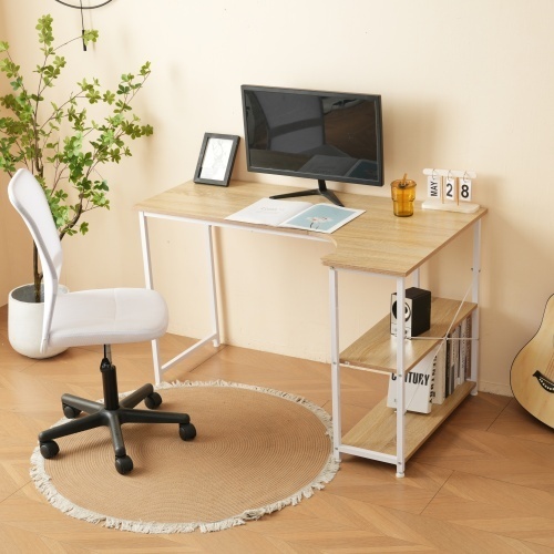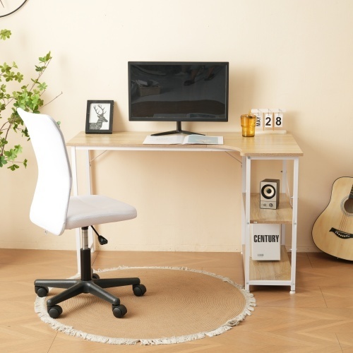 【ナチュラル】パソコンデスク L字-右棚  120cm 2段ラック付 デスク木製 ミシン台 書斎机 勉強机 AF535 KU886