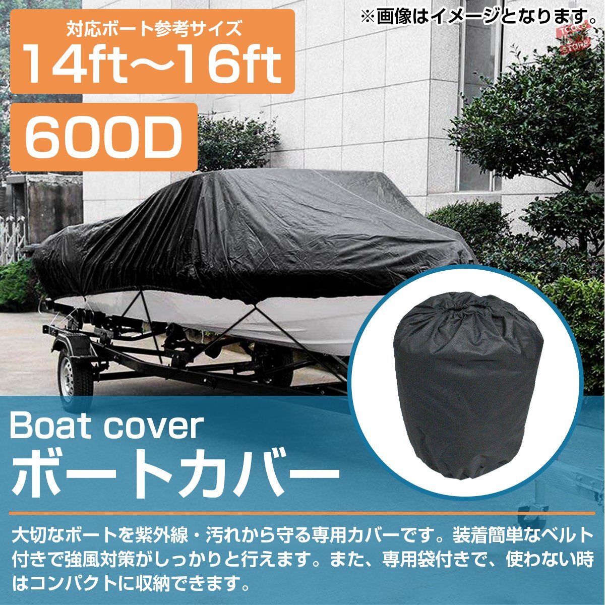 『600D!! 14ft-16ft 黒/ブラック』防水 ボートカバー 全長約540cm×幅約290cm 船体 カバー アルミボート 船 ボート 保管