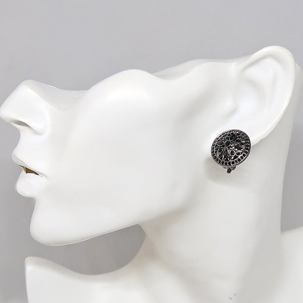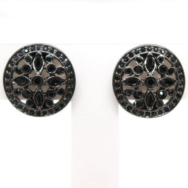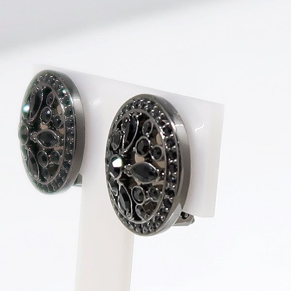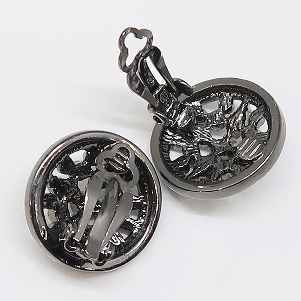 DKG★送料無料 BVA782★ ガンメタ ブラック ラインストーン 透かし イヤリング クリップ式 ブラックストーン