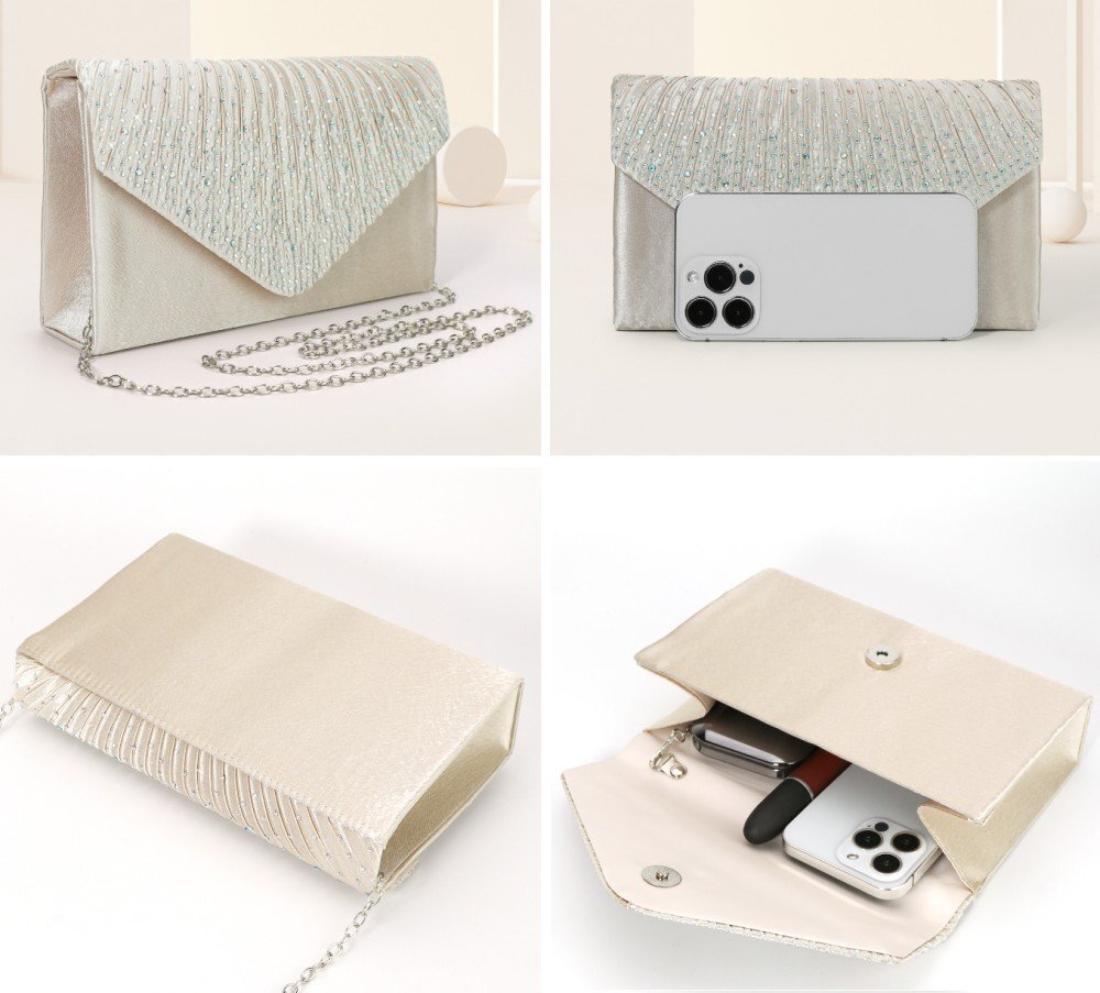 キラキラとしたビジューがエレガントなパーティーバッグ。 |