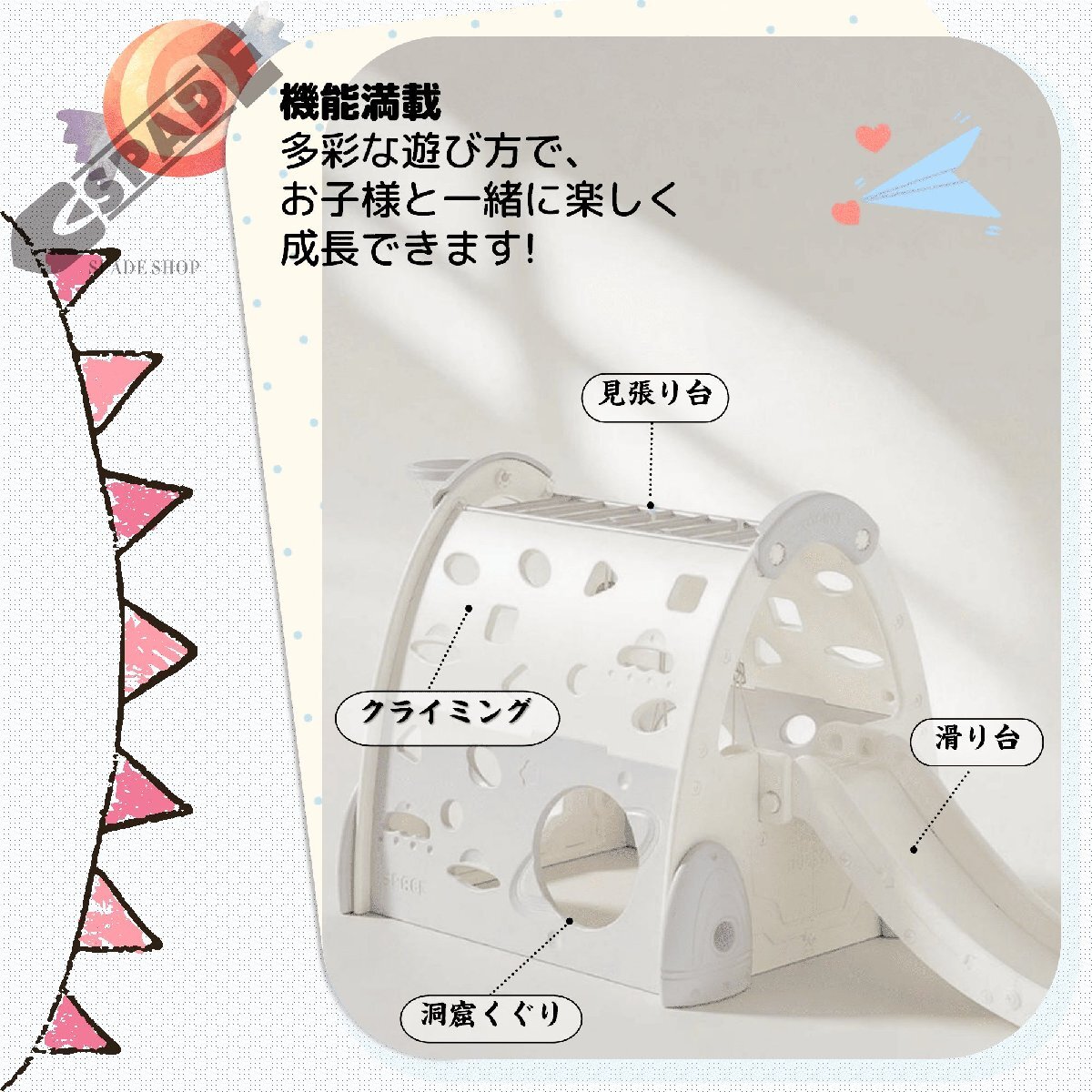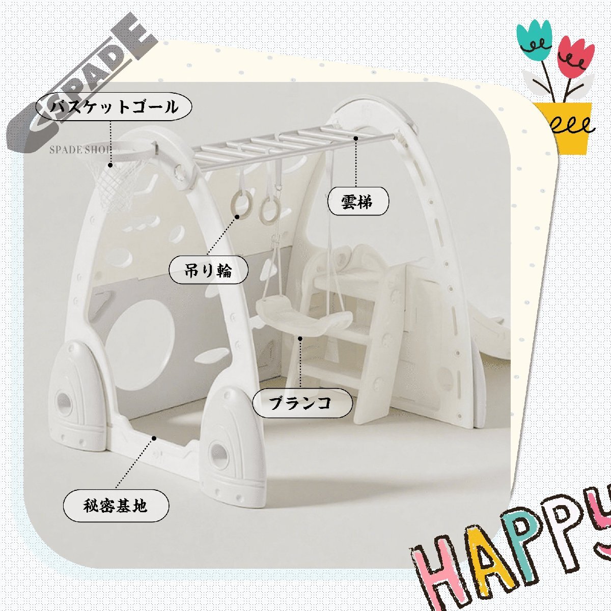 • 【バスケットゴール】バスケットゴールを搭載し、小さなお子様でも楽しくバスケを楽しむことができる。※ボールは撮影用の道具であり、実際付属しておりません。