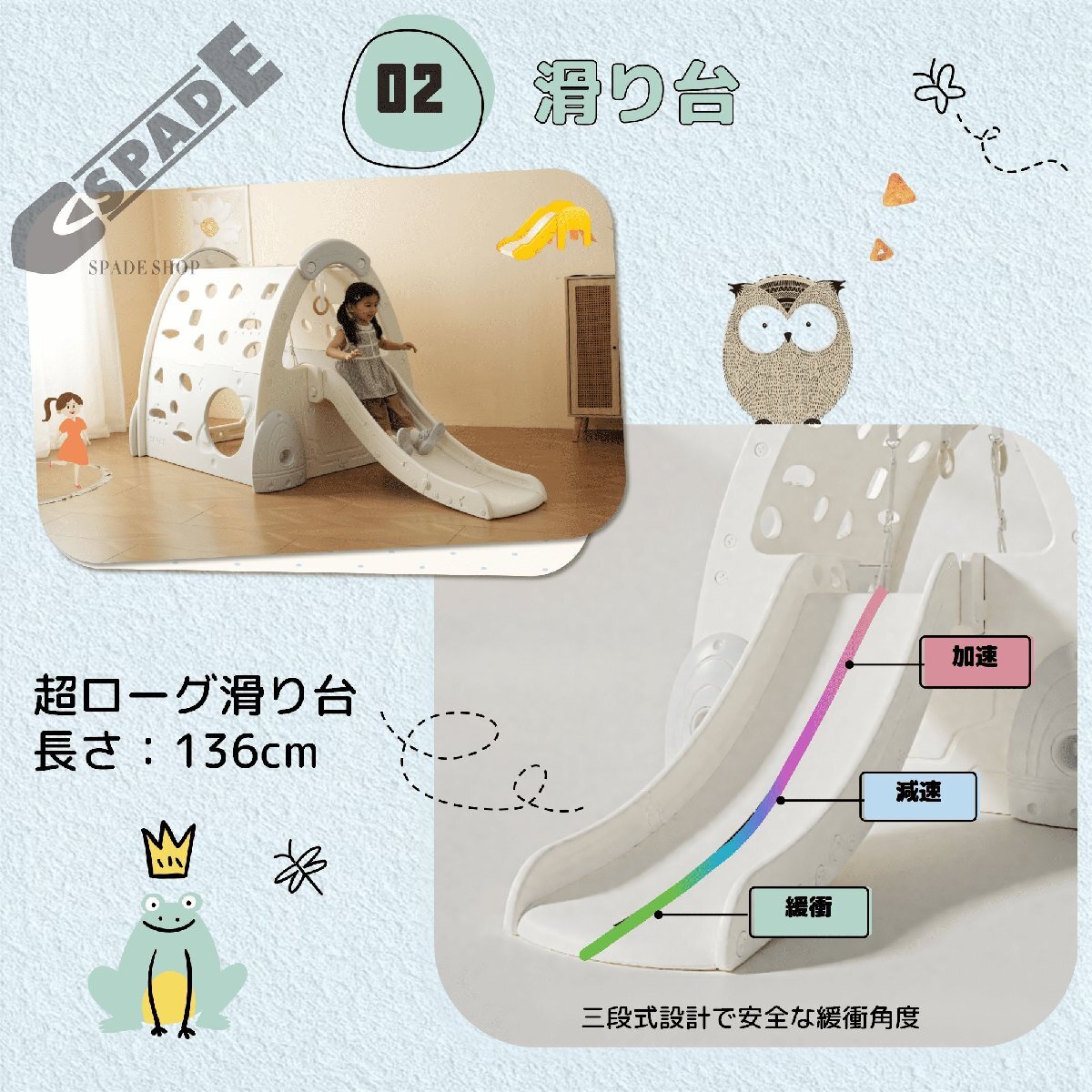 • 【滑り台】 三段式設計で安全な緩衝角度加速減速緩衝超ローグ滑り台:長さ:136cm【ブランコ】 子供が揺れることで、バランス感覚が養われます。