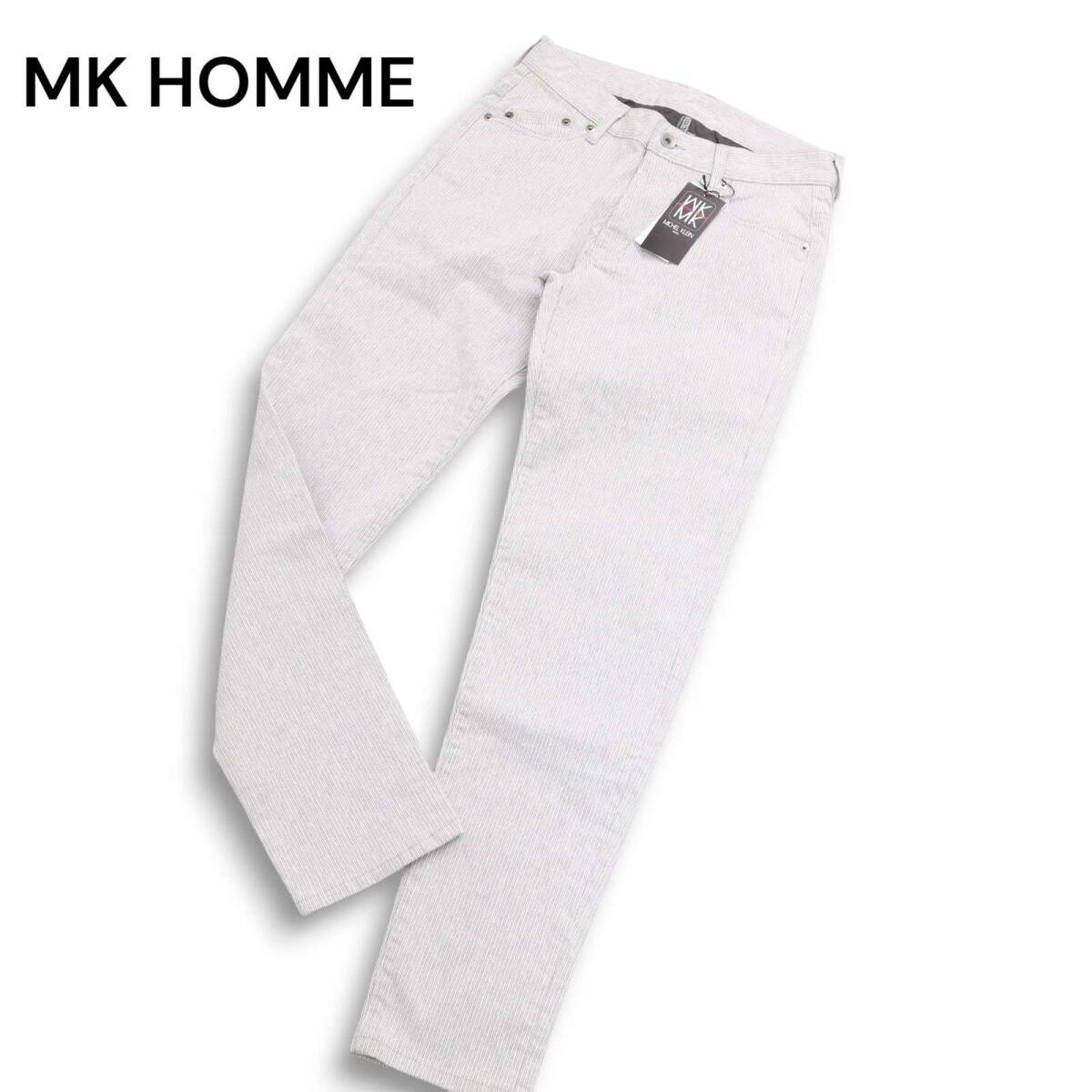 【新品 未使用】 MK HOMME ミッシェルクラン オム 通年 ストレッチ★ ストライプ テーパード パンツ Sz.44 メンズ