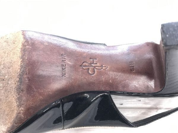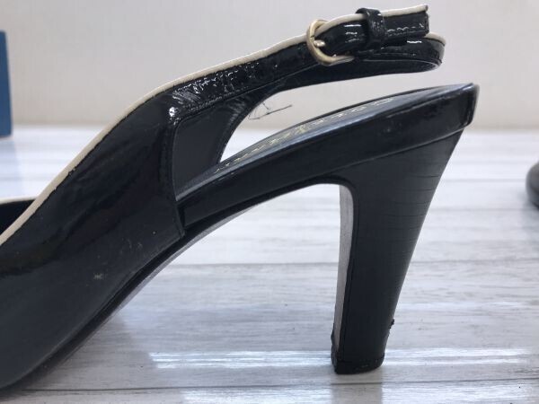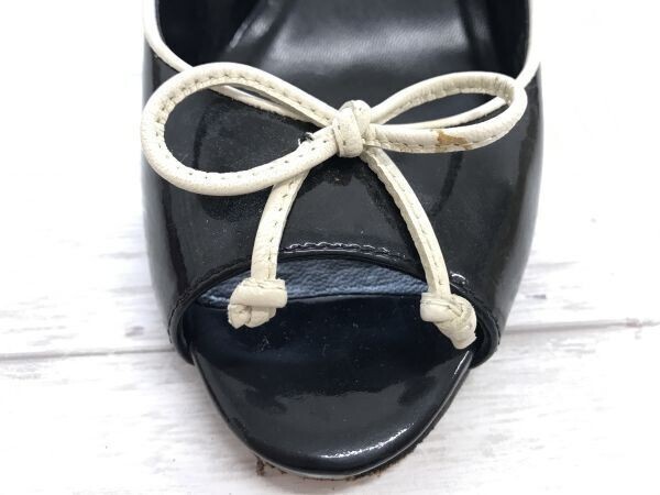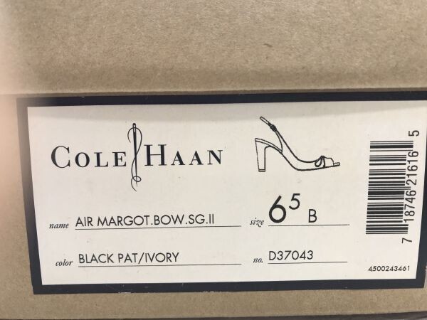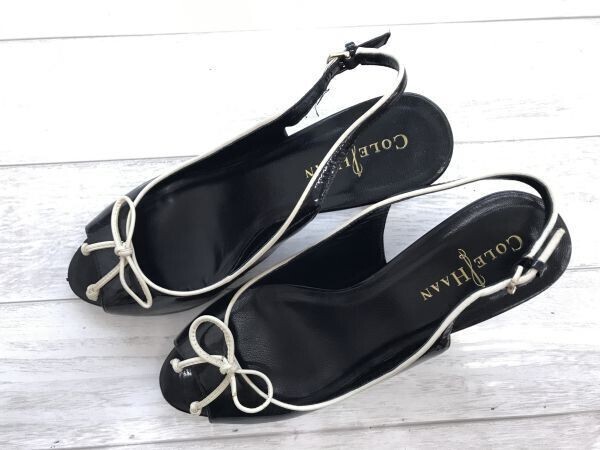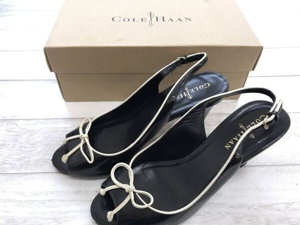コールハーン COLE HAAN リボン付き エナメル ミュール パンプス サンダル ヒール約9cm 箱あり レディース 6 1/2 (24.5cm) 黒 です。