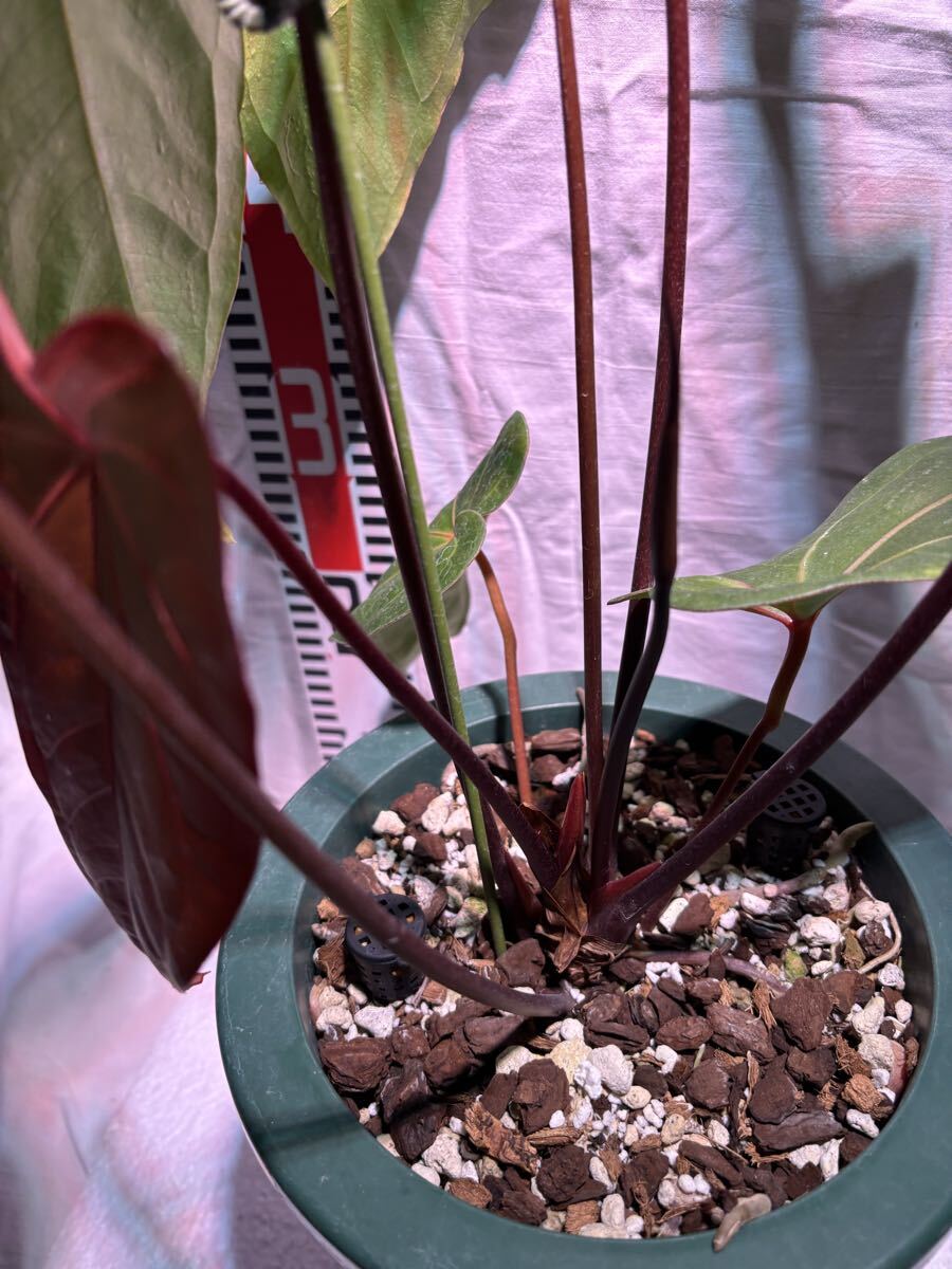 インドネシアシーディングのF1実生より選抜された個体です。素晴らしいほどの赤い新葉と、ずっと残るステムのレッドが際立つ特選個体になります。