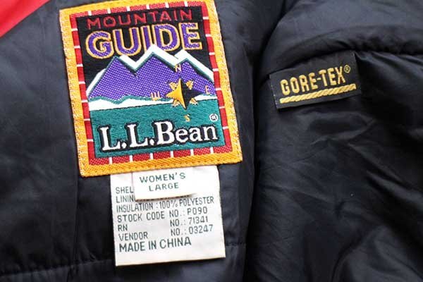 ★90s L.L.Bean MOUNTAIN GUIDE ツートン 中綿入り GORE-TEXゴアテックス ナイロン マウンテンパーカー 赤×黒 W-L★オールド ジャケット
