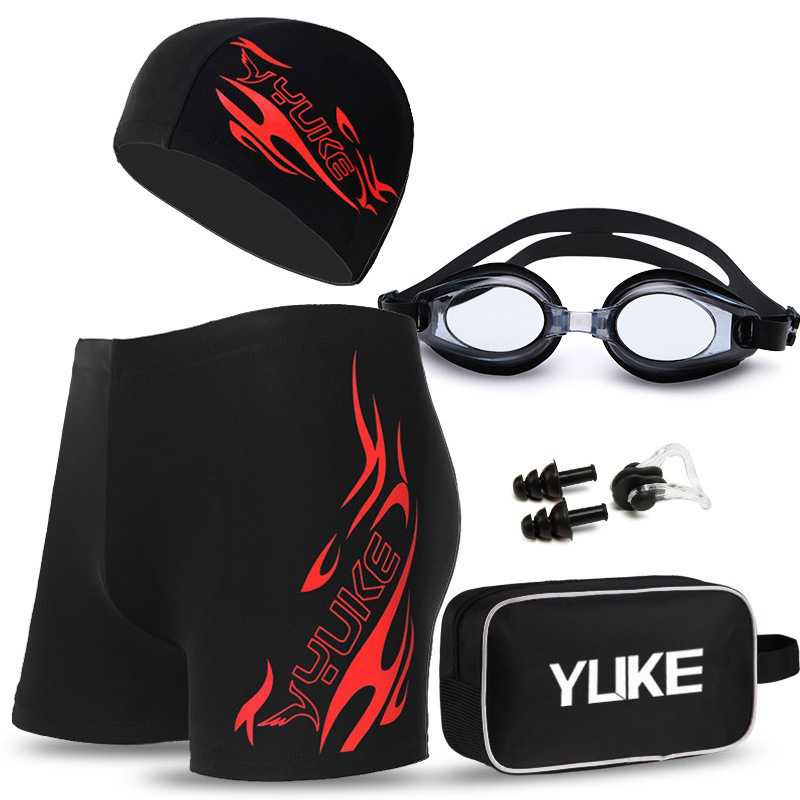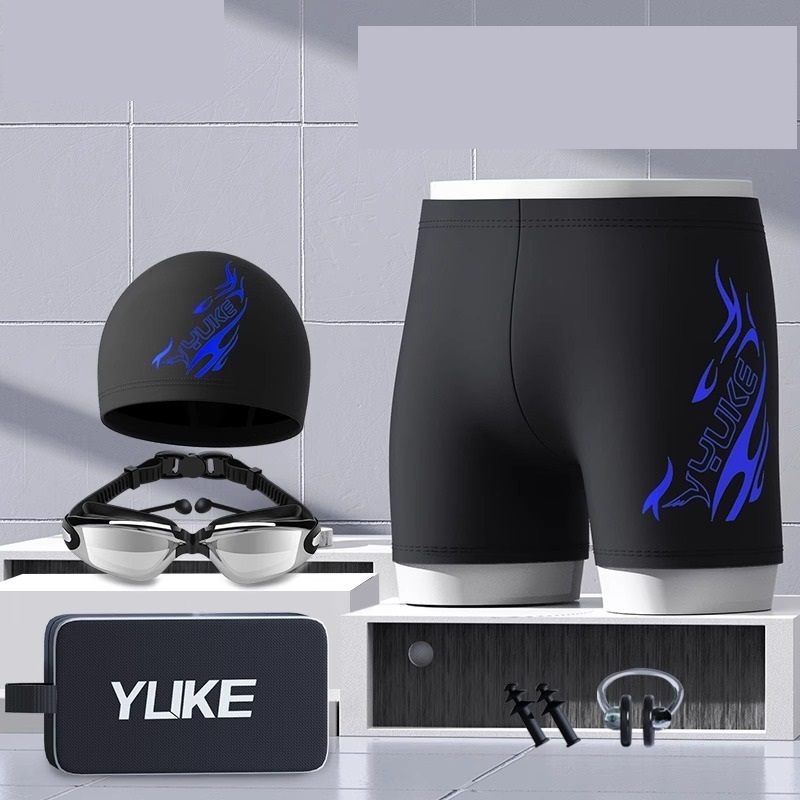 サイズ選択可新品メンズ 水着 フィットネス 競泳水着 男性 スイミング ゴーグル 水中眼鏡 スイムキャップ 6点セット
