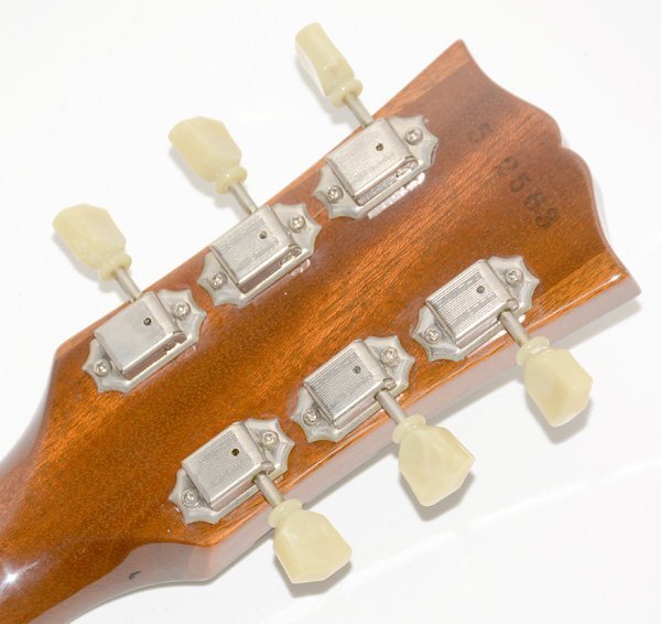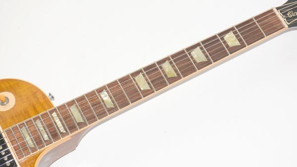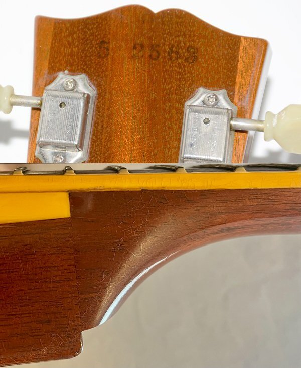 ・ボディ正面にスレ、キズ、小さな打痕、気泡の混入等が見られます。 ・ボディ底面に多少のスレ、キズが見られます。 ・ボディ側面にスレ、キズが見られます。 ・ボディ背面にスレ、キズ、小さな打痕が見られます。 ・バインディングに塗装クラック、キズ等が見られます。 ・ネックにスレ、キズ、打痕が見られます。 ・ヘッドに多少のスレ、キズが見られます。 ・ヘッド根本~ボディ側面上側にウェザーチェックが見られます。 (画像にてご確認ください。) ・ペグ、ジャック、ブリッジ等金属部分にスレ、小キズ、くすみ、サビ等が見られます。 ・ネジにキズ、サビ、腐食等が見られます。 ・指板にスレ、小キズ等が見られます。 ・ノブ内部に多少の割れが見られます。 ・ケースにスレ、キズ、汚れ、ほつれ等が見られます。 全体的に多少のキズ、スレ等が見られますが、 上記の点以外に特に目立ったキズ、ダメージは見られない状態です。 ネックはほぼストレートの状態です。 (現在の弦高は12Fで、1弦側:約1.5mm、6弦側:約1.5mm) 重量:約4.2kg、ナット幅:約42mm、スケール:約623mm |
