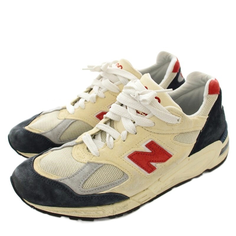 ニューバランス NEW BALANCE M990TA2 USA製 スニーカー ピッグスキンスエード US9.5 クリーム ネイビー