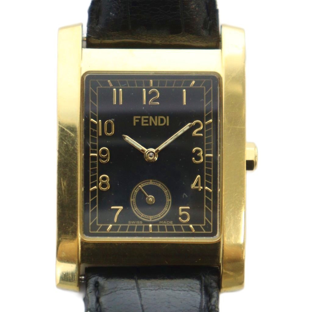 フェンディ FENDI 034-7000G-542 腕時計 ウォッチ クォーツ スモセコ 黒文字盤 ロゴ ゴールド色 ■GY11 /MQ ■OH レディース