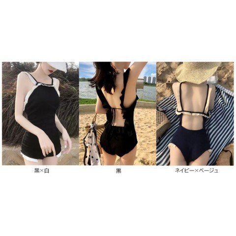 ・フリル使いが可愛い背中魅せワンピース水着です。安心の胸パッドつき。(パッドは取り外し不可)