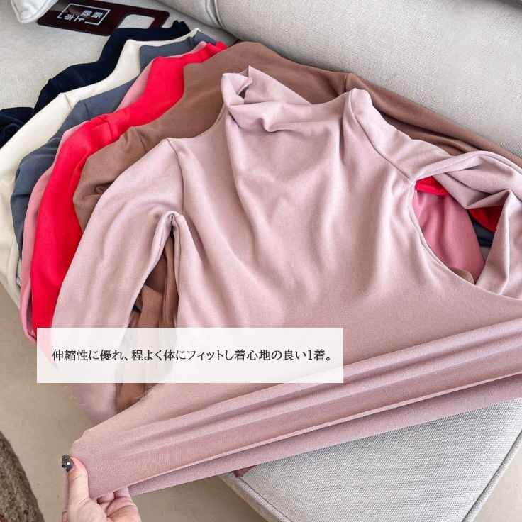 ・大人っぽく上品な印象のタートルネック。伸縮性に優れ、程よく体にフィットし着ぶくれしにくいです。