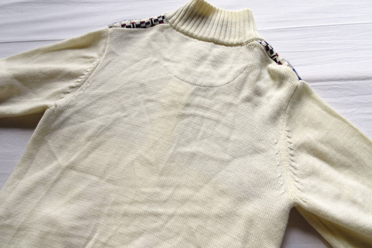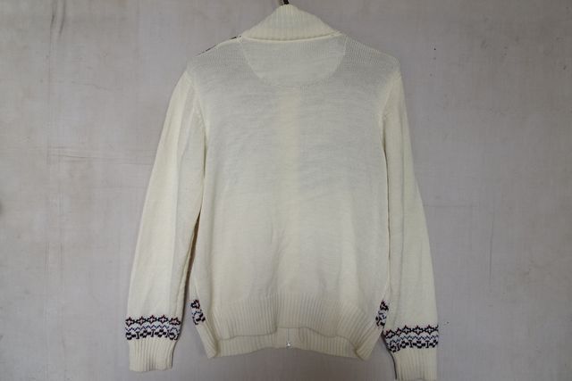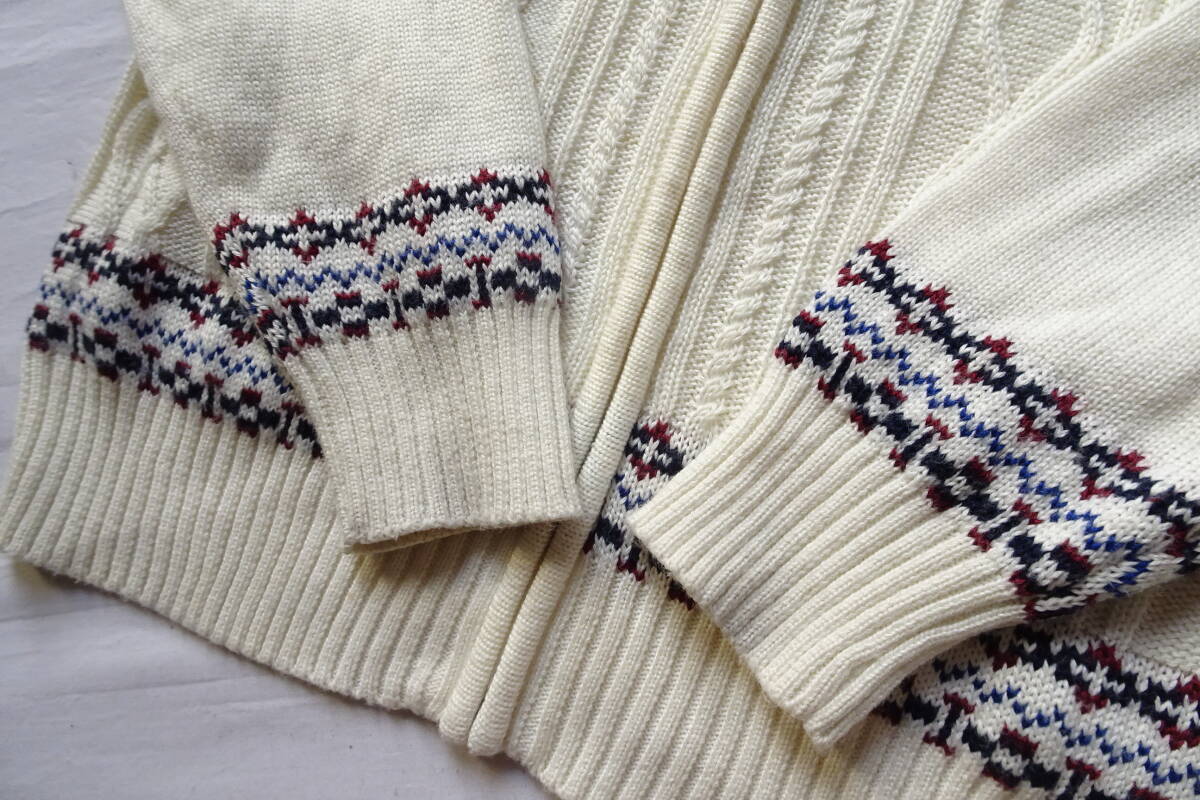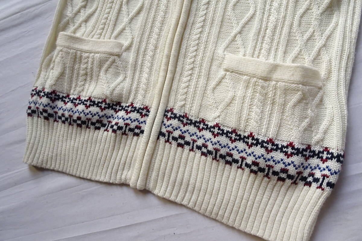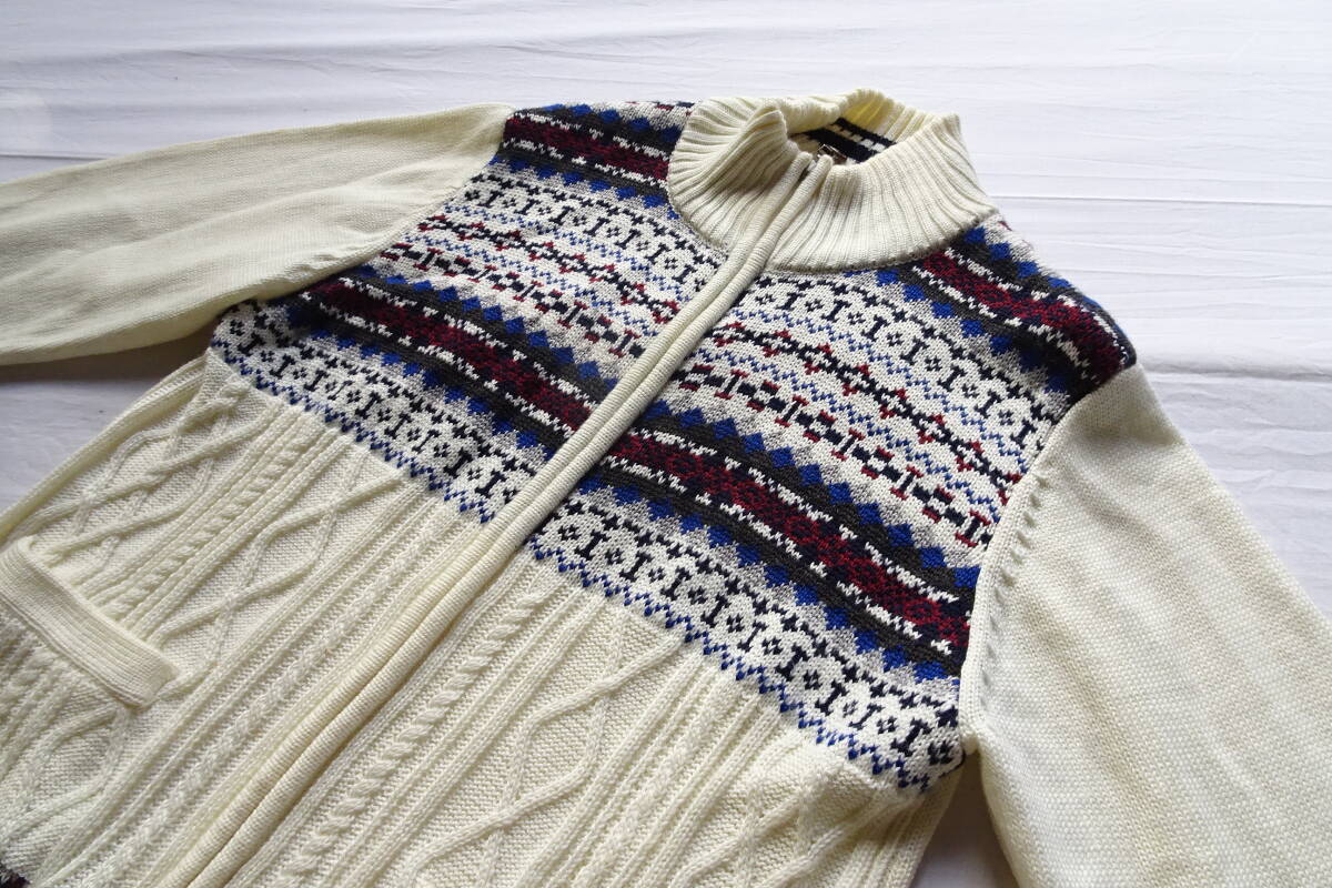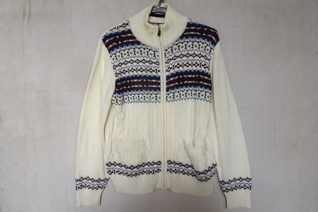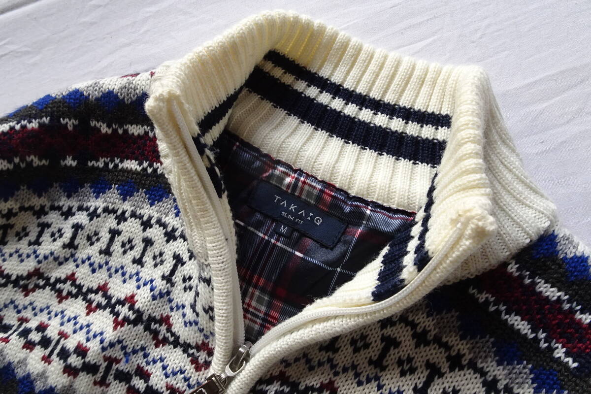 TAKA:Q/タカキュー/長袖セーター/ジャケット/SLIM FIT/アクリル・ウール混素材/前ジップアップ/トライバル柄/オフホワイト/Mサイズ(11/4R7)