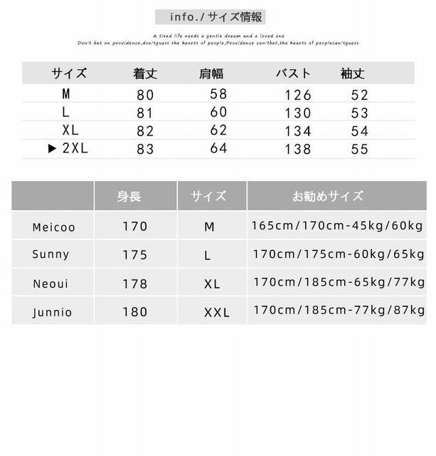 サイズ:画像をご参照ください。 ※サイズには多少の誤差がございます。 ※注意事項: 秋冬春服は通常より ワンサイズ 大き目の方がお勧めです。 サイズが合わない理由の交換や返品はお断りさせていただいております。予めご了承下さい。 ご入金が確認後,発送まで少し時間がかかりますので、お急ぎの方はご注文をお控えいただきますようお願いいたします。 海外インポート品なので,糸の継ぎ目や多少のほつれ、または色ムラなどが生じている場合がございます。ご理解の上ご購入ください。