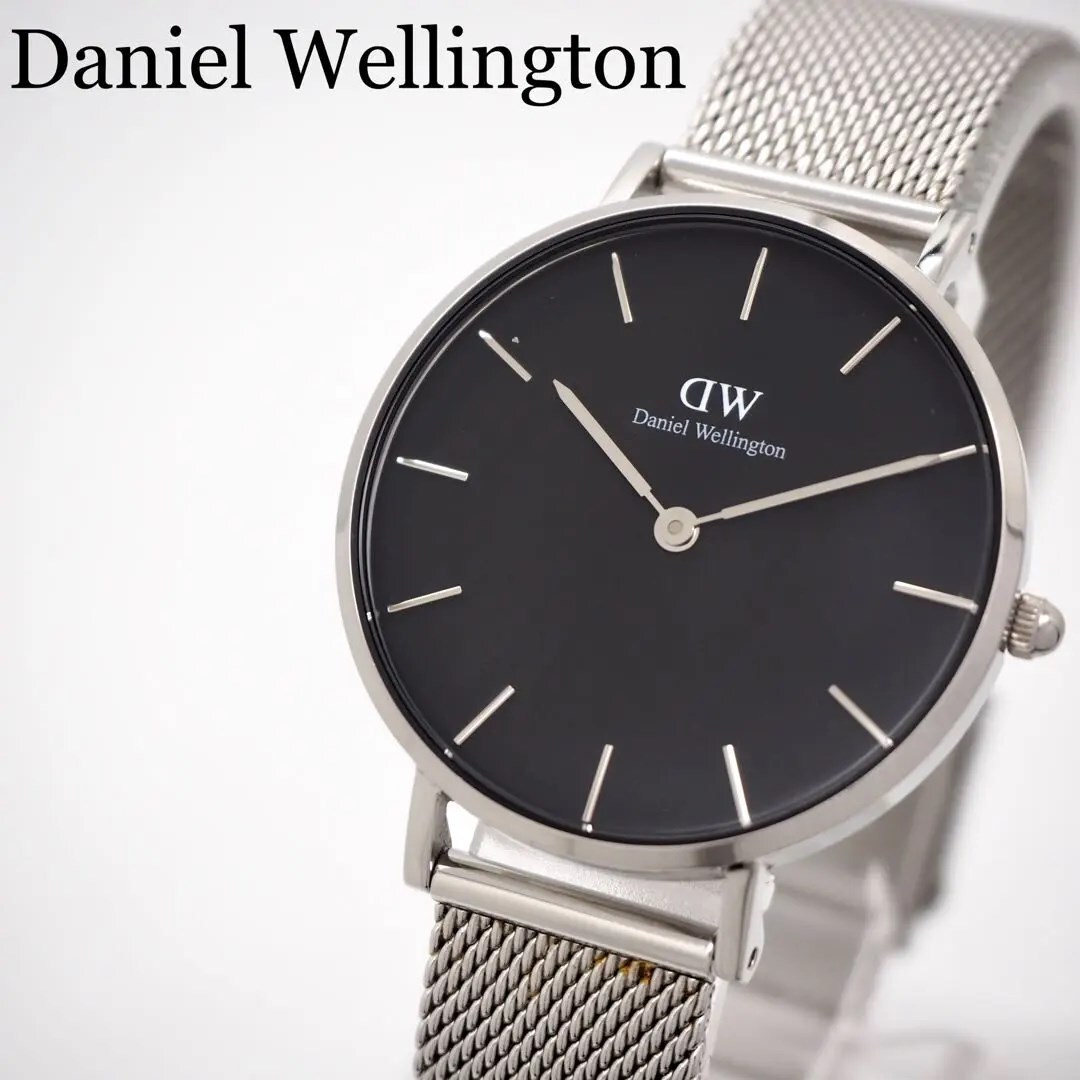 49【美品】ダニエルウェリントン レディース 時計 シルバー ブラック 32ミリ