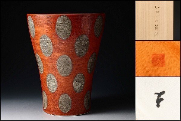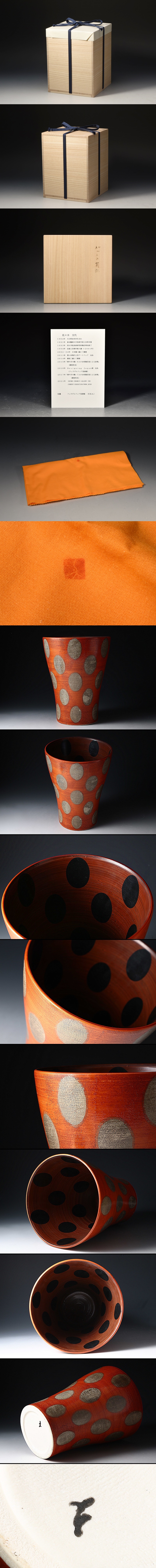 U07763 東京芸大 佐々木文代 色絵 ドット 筒鉢 共箱 /3F