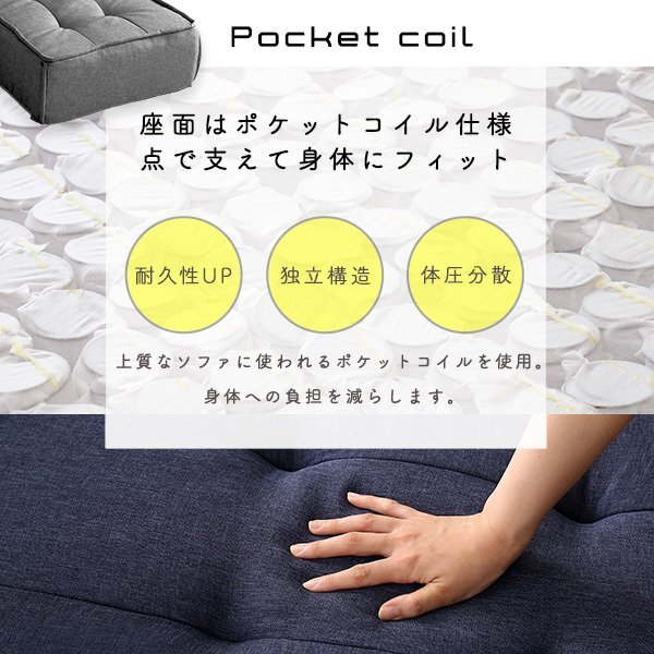 | 【ポイント】 イロとカタチを楽しむ一人掛けフロアクッションです。 一人掛けはもちろん、複数並べておくとロングソファとしてもお使い頂けます。 軽量設計なので、気軽に持ち運べて楽ちんです。 座面はポケットコイルを使用しており、耐久性 独立構造 体圧分散があるので、身体への負担を軽減します。 |