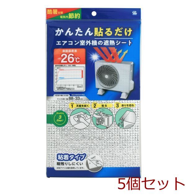 貼るだけエアコン室外機の遮熱シート 太陽熱による温度上昇を抑える! 「エアコン室外機の遮熱シール」 ・エアコン室外機の天面に貼るだけで、直射日光による温度上昇を軽減する遮熱シートです。 ・PETアルミ蒸着フィルムが太陽光をしっかり反射し、室外機の熱負荷を軽減。 冷房効率を保ち、省エネにも貢献します。 ・粘着面付きなので、工具不要で簡単に取り付け可能。 ・型紙を剥がして貼るだけの手軽さが魅力です。 生産地 中国 サイズ 商品サイズ(約):幅88×奥行33×厚み0.2cm 個装重量(約):72g 素材 上面:PETアルミ蒸着フィルム 本体:発泡ポリエチレン、LDPE 接着剤:アクリル樹脂 離型紙:PETフィルム 耐熱温度(約):60℃ ブランド ワイズ |