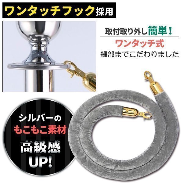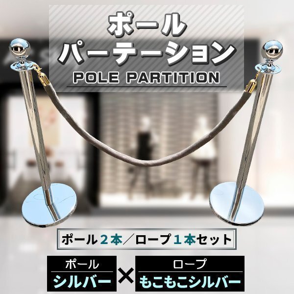 ポールパーテーション 2本 セット シルバーポール シルバーロープ もこもこ ガイドポール ポール スタンド パーテーション