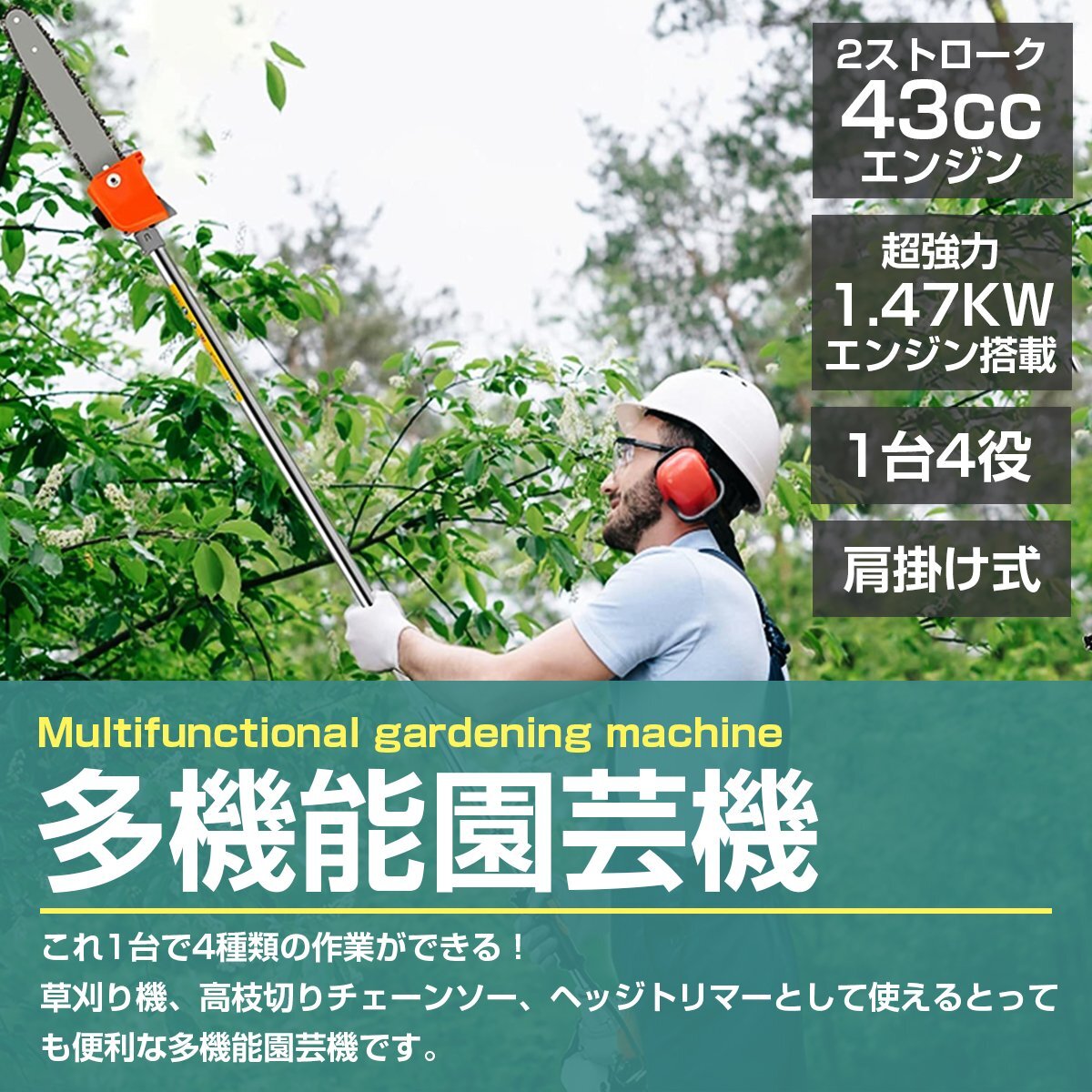 多機能 1台4役 草刈り機 芝刈り機 肩掛け式 チップソー付 2サイクル 43cc 1.47kw チェーンソー 替刃 芝刈り機 ヘッドトリマー 2ストローク