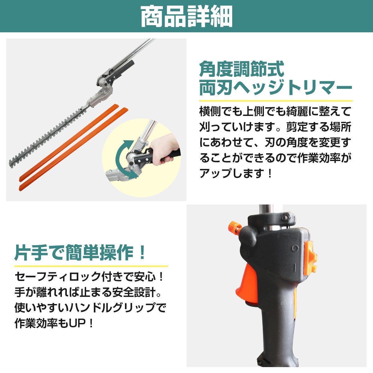 草刈り機、高枝切りチェーンソー、ヘッジトリマーとして使える