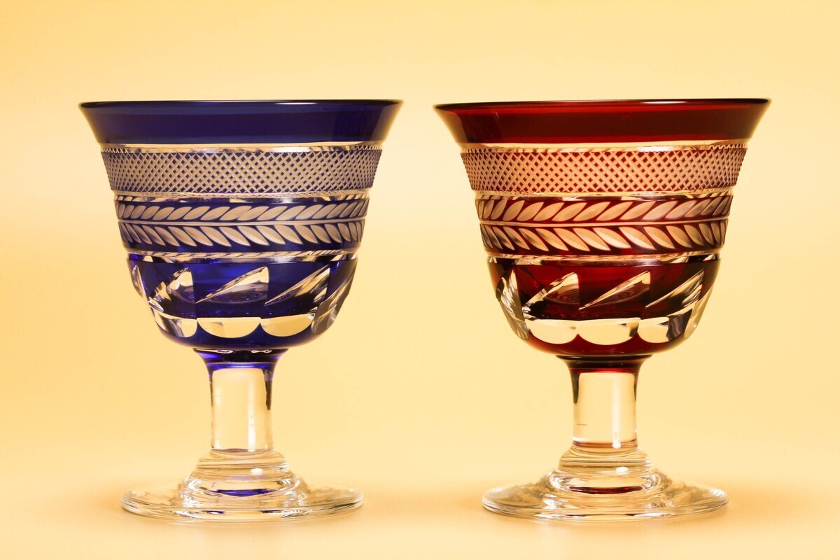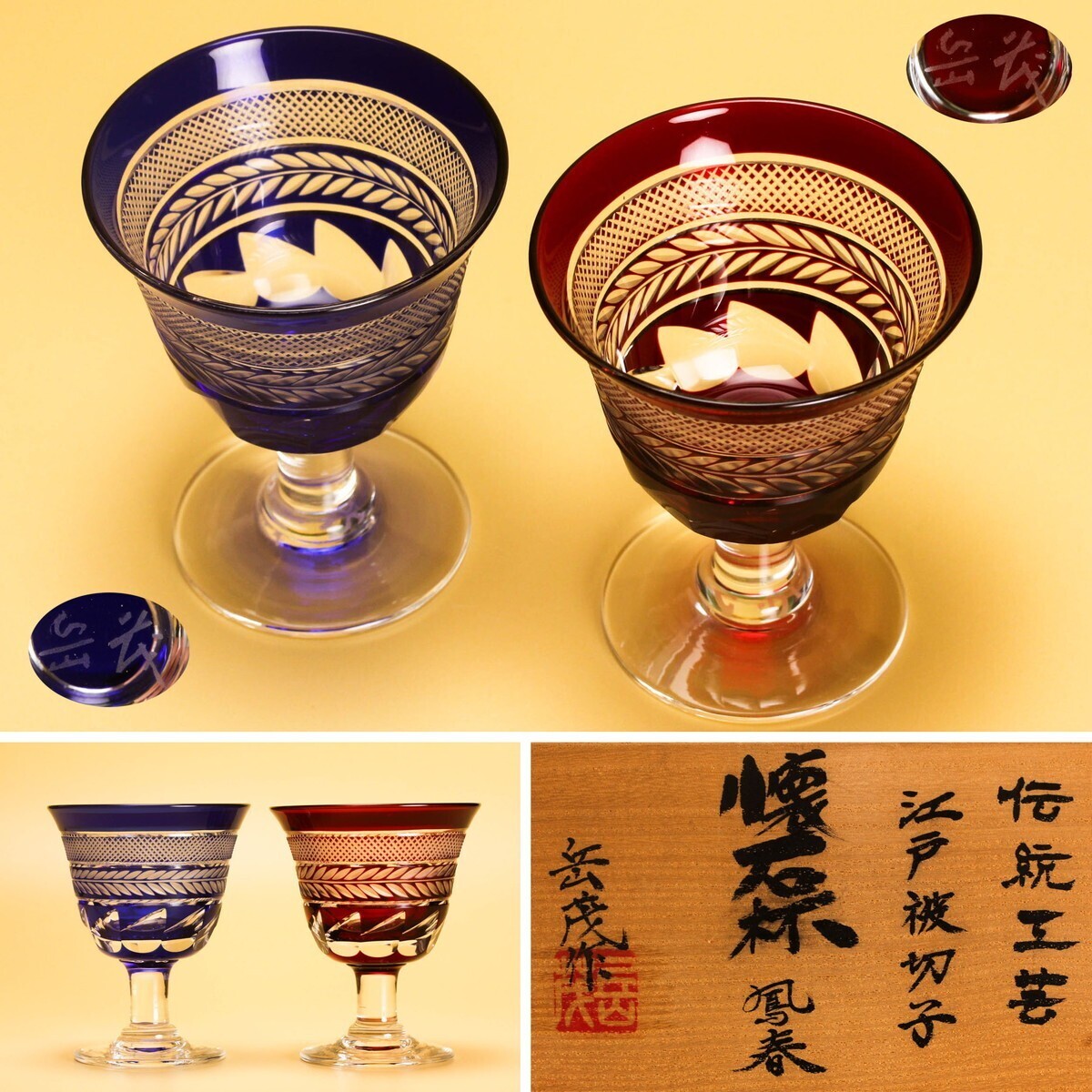 矢部保(岳茂) 江戸被切子 銘『鳳春』懐石杯 共箱 栞 本物保証