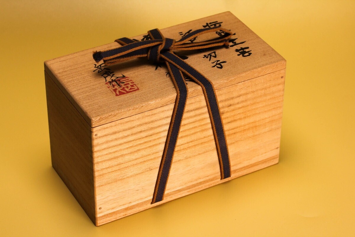 稀に他の作品名・作家名が書き付けられた木箱をお付けしております。誤認防止のため箱書き部分の画像を掲載しない場合もございます。