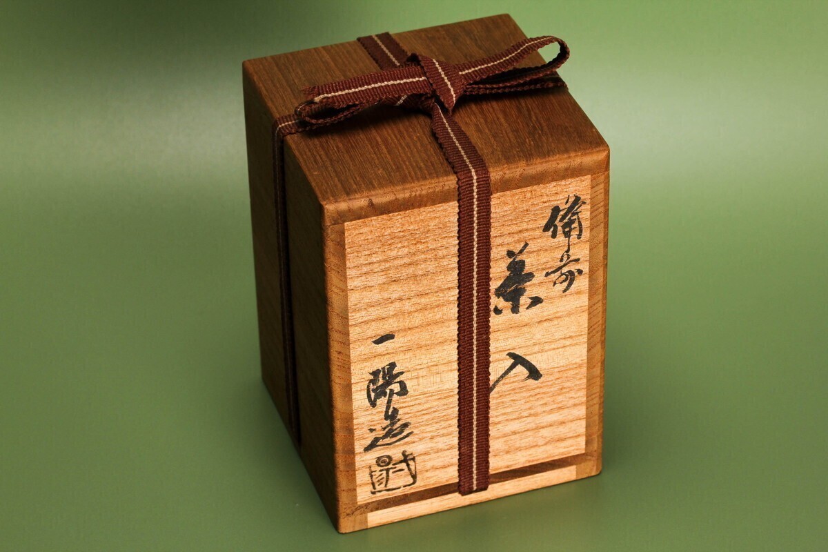 稀に他の作品名・作家名が書き付けられた木箱をお付けしております。誤認防止のため箱書き部分の画像を掲載しない場合もございます。
