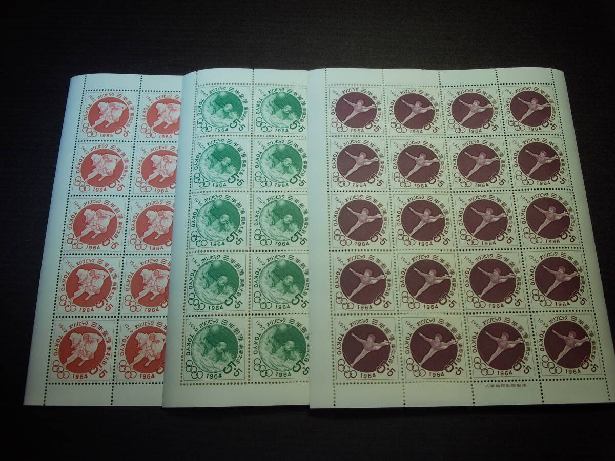 東京オリンピック寄付金付き切手 2次 3種(柔道、水球、平均台) 各1シート  極美品  売価600円