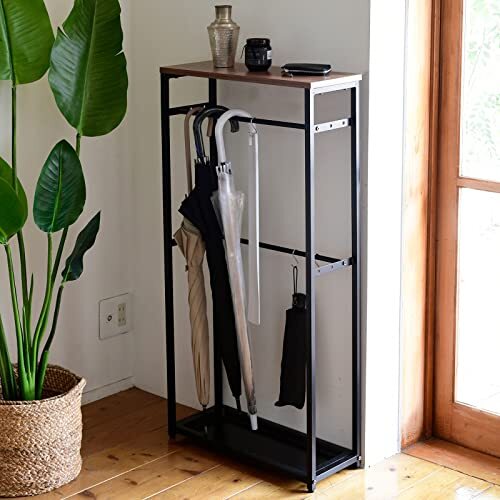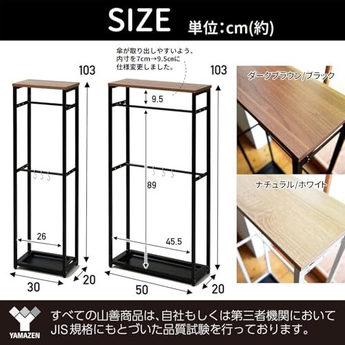 山善(YAMAZEN) 傘立て (傘かけ) 玄関 スリム 【70cm傘対応】 幅50×奥行20×高さ103cm S字フック3個 2段 バーの奥行が変えられる(3段階) 組立品 ダークブラウン/マットブラック RUS-50(DBR3/MBK)