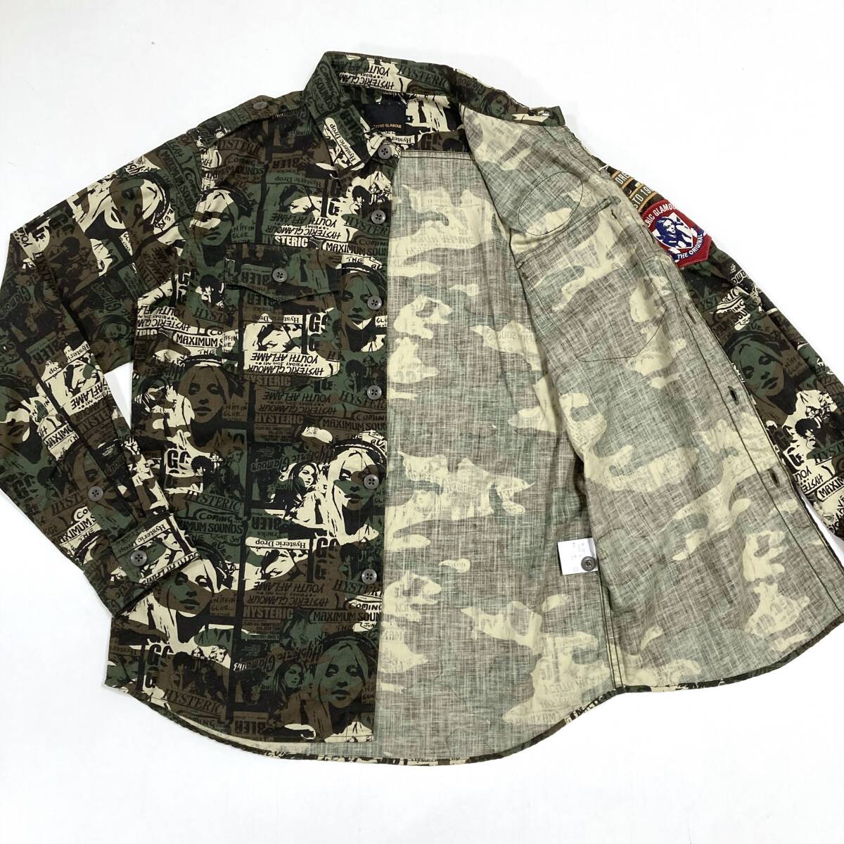 新品未使用品 HYSTERIC GLAMOUR ヒスガール 迷彩 総柄 長袖 シャツ メンズ Sサイズ ヒステリックグラマー カモフラ archive 5060722