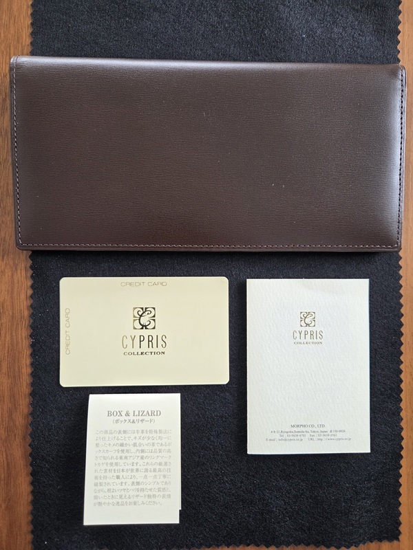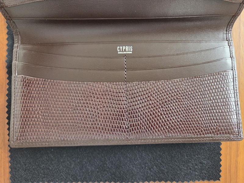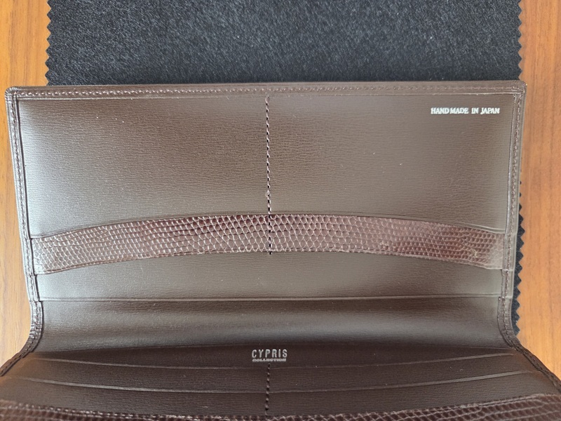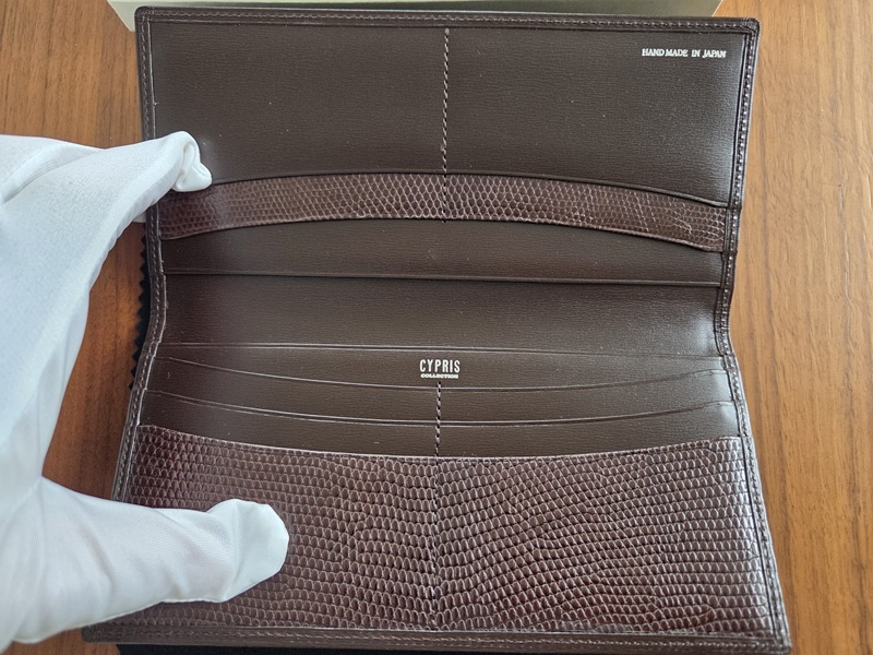 ◆CYPRIS COLLECTION キプリスコレクション 4290 長財布(マチなし束入・小銭入れなし) ボックスカーフ&リザード2 チョコ◆