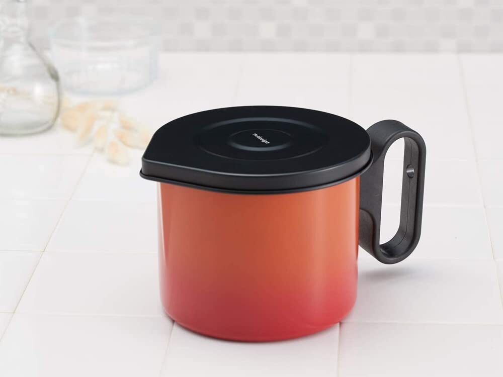 説明 こんなのほしかった、miniタイプオイルポット 使いやすい小型0.8Lサイズ オイルサーバーとしてもちょうどいい コンパクトで邪魔にならず、置く場所を選ばない 1枚絞りで油モレ無し 握ったときに手が本体に当たらないのもgood お洒落なオレンジグラデーションカラー SGマーク 製品安全協会適合品