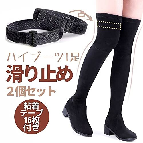 Lifepower ハイブーツ用滑り止めベルト 2個セット ローブーツ ハーフブーツ ニーハイブーツなどに ブーツ裏側に取り付け 外から見えない 粘着テープ16枚付