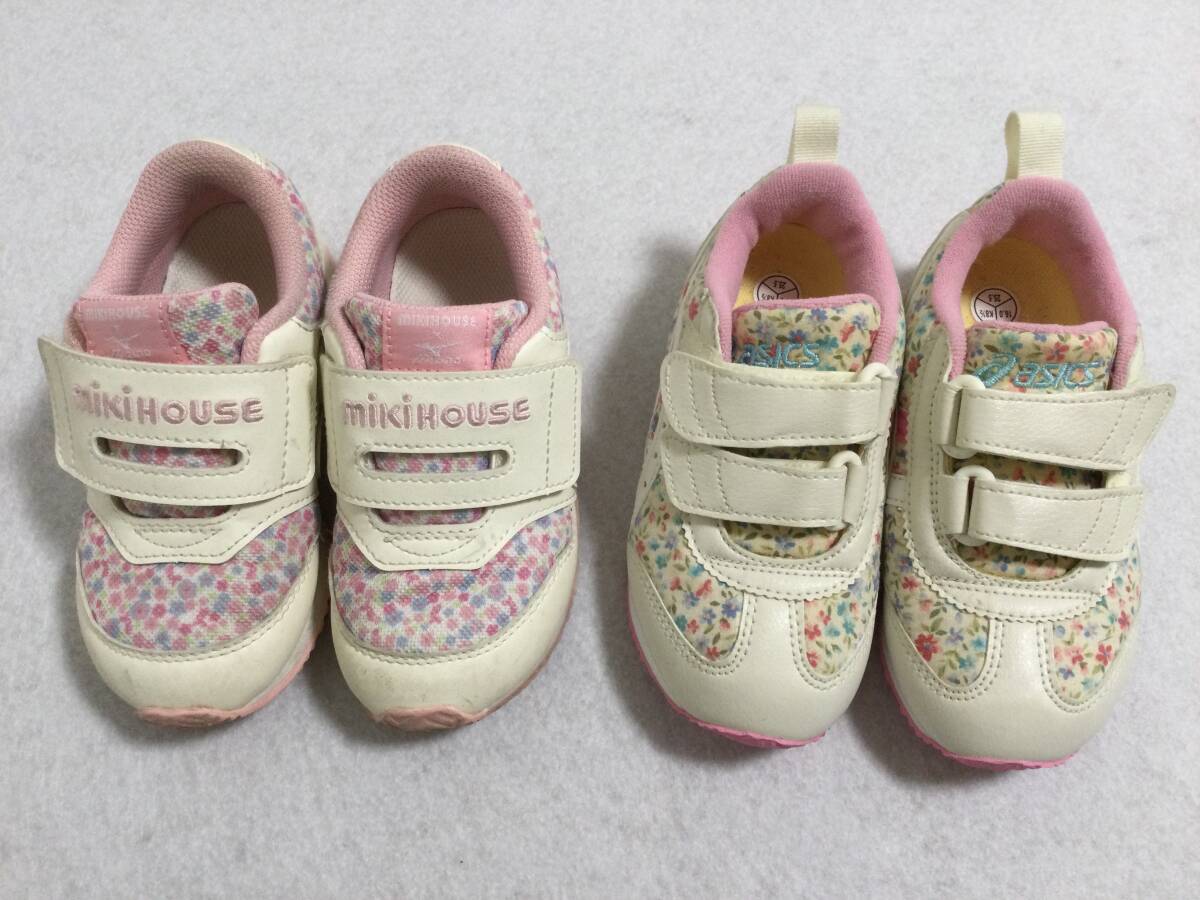 アシックス&ミキハウス キッズスニーカーまとめて 16㎝ asics mikihouse 靴 シューズ キッズ 保育園 幼稚園 登園用 白 花柄 箱なし