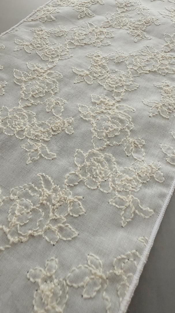半衿 牡丹の刺繍 コットンレース オフ白 半襟 洗える エンブロイダリー きなり