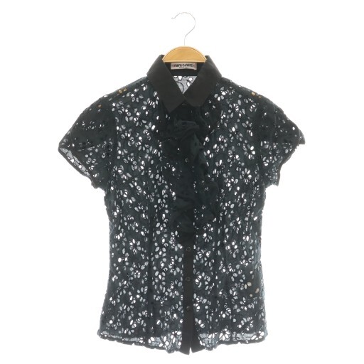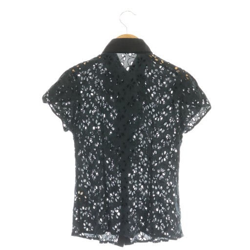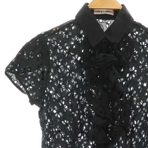 ナラカミーチェ NARA CAMICIE ブラウス 半袖 レース スタンドカラー 0 黒 ブラック /AT ■OS レディース