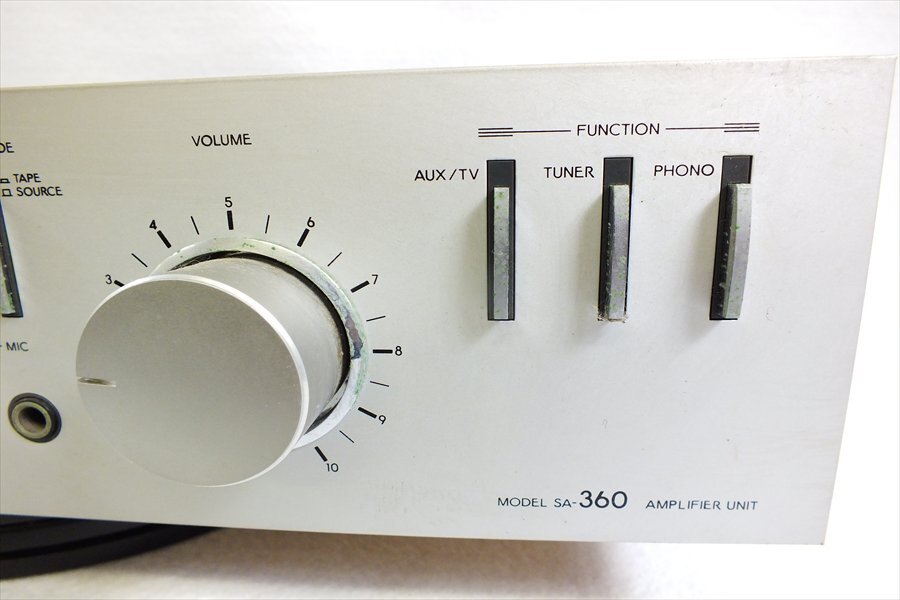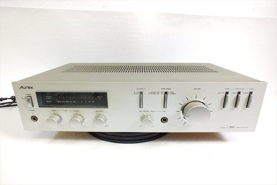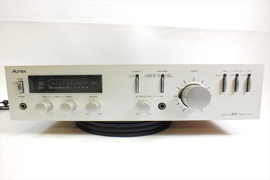 | ◆商品◆ メーカー---------Aurex オーレックス 型式-------------SA-360 付属品-----------画像に写っているものがすべてになります。 ◆外装ランク◆ 【 C 】 ◆状態◆ 中古品の為キズや汚れなどの使用感はご容赦ください。 1 通電します 外装にキズ汚れ有り、ツマミ腐食 音出し出来ませんでした。 通電はしましたが、動作しませんでした。 現状品での出品となります。 調整やメンテナンスが必要となります。 【重要】配送送料と送料に送料が0円と表示される場合がございますが、出品画面に記載の送料が落札後にご精算されます。 | |||||||||||||||||