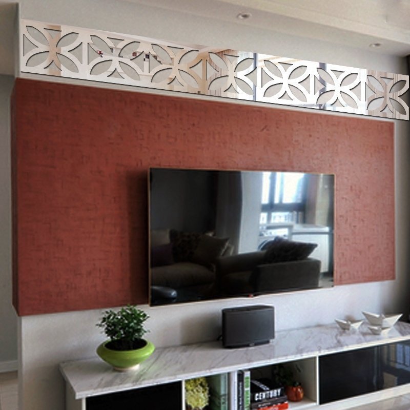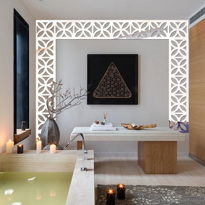 フレーム フラワーモチーフ モダンミラーウォールステッカー 100㎜【シルバー】 1枚 鏡 シール インテリア 割れない鏡