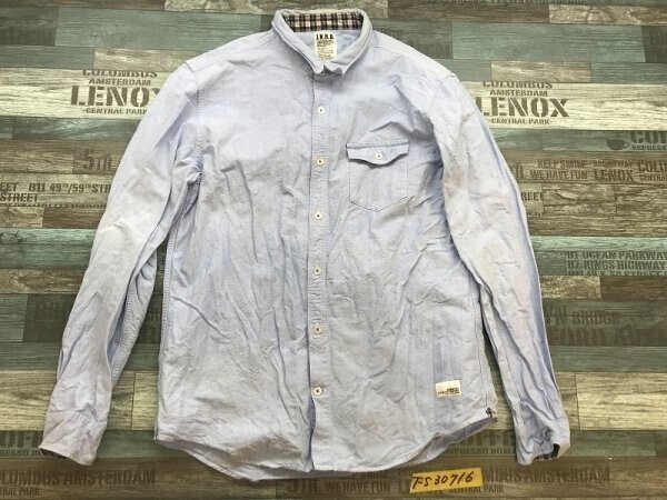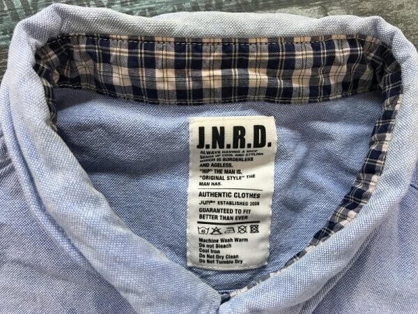 J.N.R.D. ジュンレッド メンズ 牛革パイピング 襟ワイヤー入り 長袖シャツ 2 水色 です。