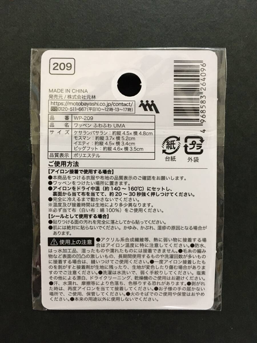 UMAワッペン☆彡 ふわふわ未確認生物 ケサランパサラン☆ 刺繍 シール アップリケ 新品未開封品