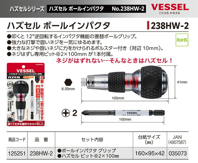 VESSEL ハズセルボールインパクタ No.238HW-2〔ネジがはずれない…そんなときはハズセル!〕