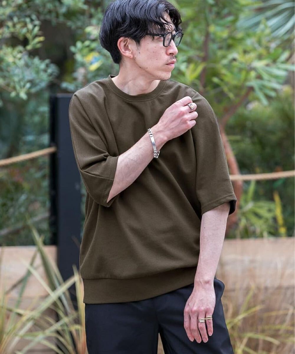 ジャガード編みならではの凹凸感のある表情と、スウェットライクなデザインはシンプルな一枚でもコーディネートのアクセントになる一枚です。