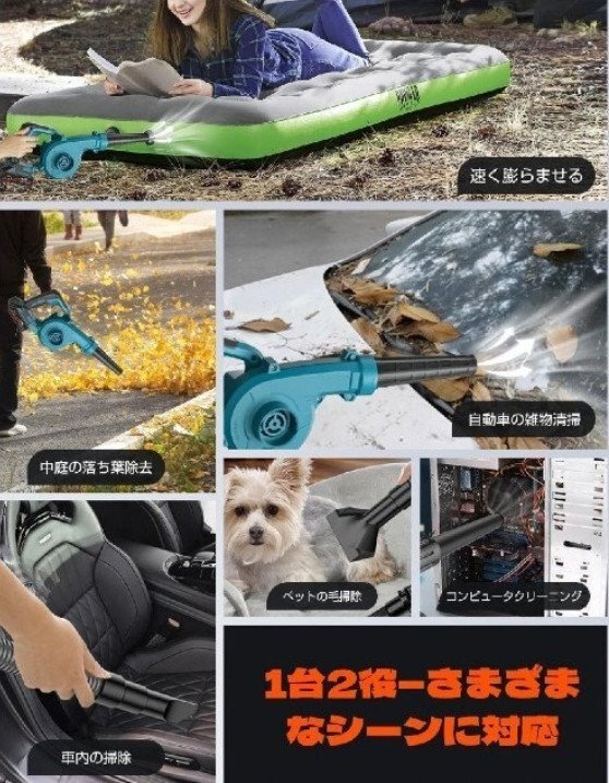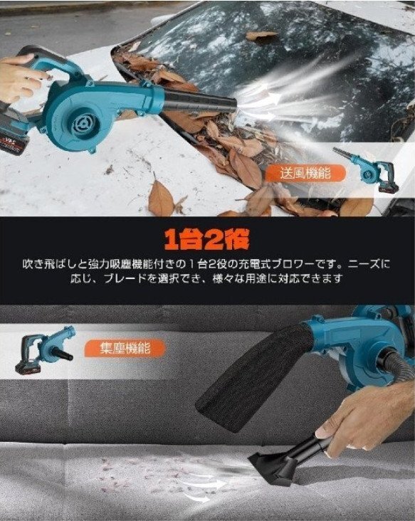 (A99)【1台2役&様々な場合に適用】吹き飛ばし・強力吸塵機能付きの1台2役のブロアー 充電式です。ニーズに応じ、ブレードを選択でき、様々な用途に対応できます。ケースのほこり、落葉掃除、庭の掃除、車の掃除、工業掃除、家庭の掃除、BBQの火起こし、コンピュータなどいろんな分野に大活躍!
