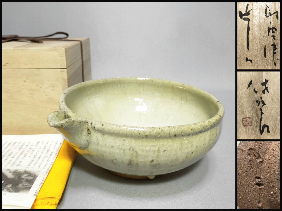 TW09 唐津焼 鉢 名工 田中佐次郎 造 斑唐津 片口 幅20.3×23.3cm 栞・共箱