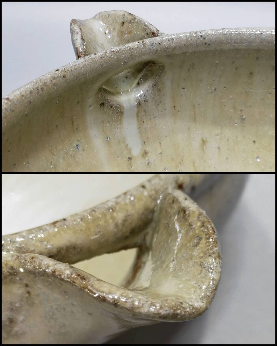 唐津焼 鉢 名工 田中佐次郎 造 斑唐津 片口 幅20.3×23.3cm 栞・共箱