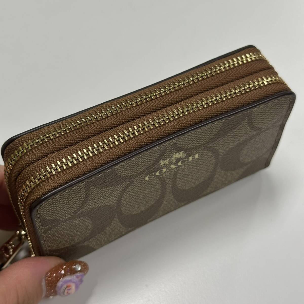 【未使用品】COACH コーチ シグネチャーキャンバス ダブルジップウォレット 小型財布 中劣化あり レタパプラス発送 現状品 F2949