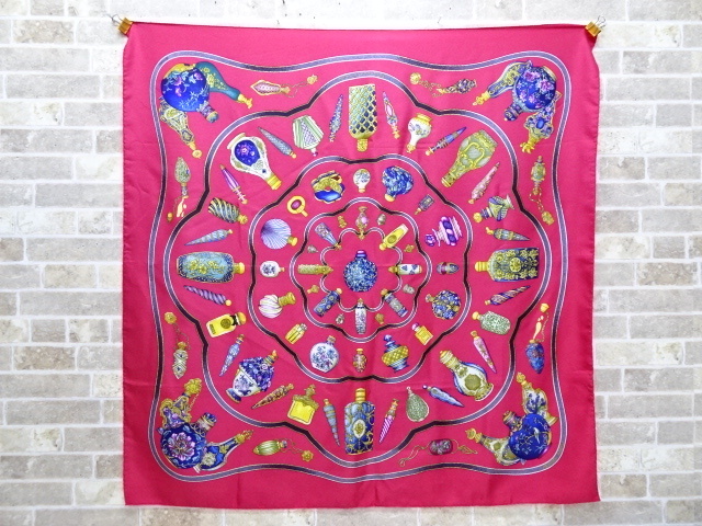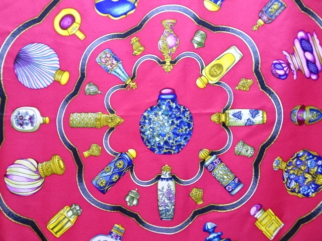★1052MZ7-A HERMES エルメス カレ90 シルクスカーフ 香水瓶柄